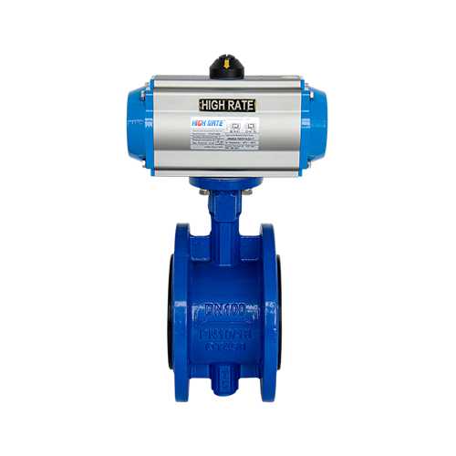 HIGHRATE氣動法蘭蝶閥是由氣動執行器和法蘭蝶閥組成,安裝對應的閥門附件可以用來切斷和調節的場合使用,例如:配電磁閥換向閥、限位開關等用在開關和切斷的場合,配閥門定位器,給出模擬量控制信號,可以控制閥門開度大小,來實現調節管道壓力、流量、溫度的大小。
